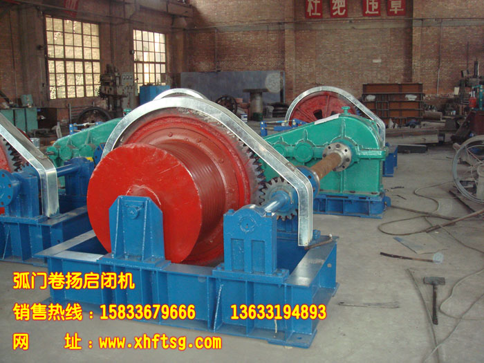 ●臺車式移動啟閉機通常行走在閘門門槽頂部平面或平面以上的混凝土排架上,門式移動啟閉機僅行走在閘門門槽頂部平面上。門式啟閉機門架腿上有時也設回轉式懸臂吊鉤以便起吊其他設備,從而構成多用途門形移動式啟閉機 歡迎各界朋友考察,指導和業務洽談。 手動卷揚啟閉機又稱手搖絞車,手動卷揚啟閉機是由人力或機械動力驅動卷筒、卷繞繩索來完成牽引工作的裝置?梢源怪碧嵘、水平或傾斜拽引重物。卷揚機分為手動卷揚機和電動卷揚機兩種,F在以電動卷揚機為主。電動卷揚機由電動機、聯軸節、制動器、齒輪箱和卷筒組成,共同安裝在機架上。對于起升高度和裝卸量大工作頻繁的情況,調速性能好,能令空鉤快速下降。對安裝就位或敏感的物料,能用較小速度。 手搖卷揚啟閉機設有上下行程限位形狀作極限保護運行。吊點的中心距應按參數中規定的范圍內選擇并確定數值。機器整體的機械強度按輕型工作級別計算,電動機按短期運行,若工作級別需要提高,用戶應提出,然后更換啟閉機制造圖樣種類 ,制造并供貨。